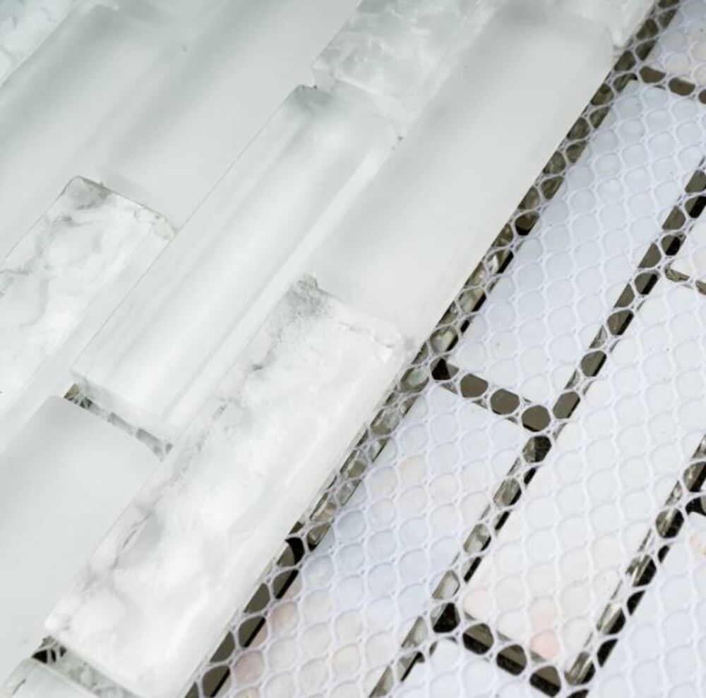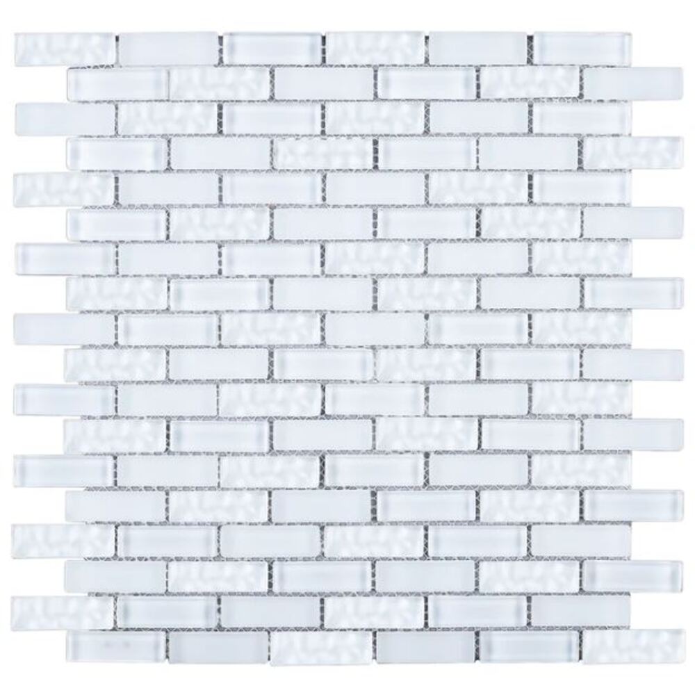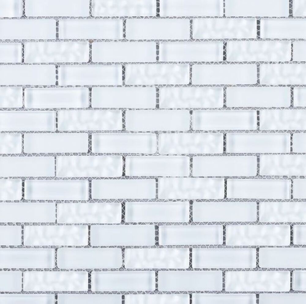 1/2x2 Brick Pattern Glass Wall Tile; Color: White Glass Tile & White Marble Wall Tile