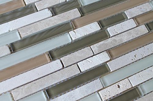 A nice neutral mix of browns, white and cream colors come together in this delightful blend of random glass and travertine strips. Bamboo is also available in a 5/8 x 5/8 mosaic tile.