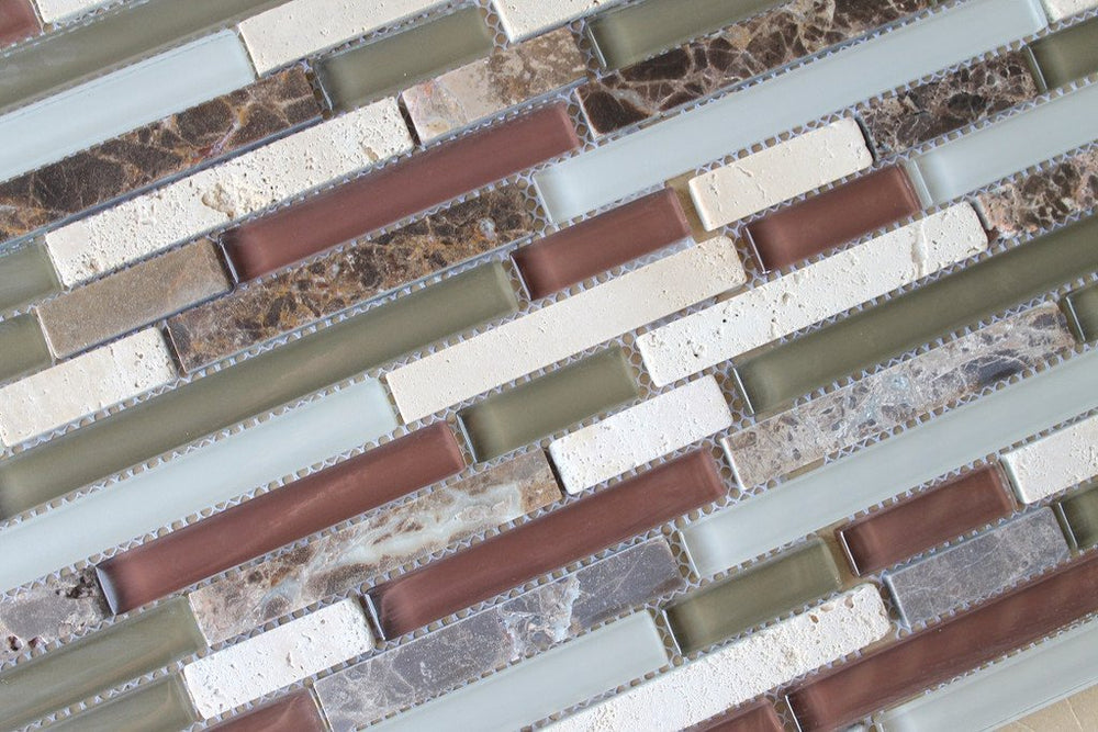10 sq ft - Bliss Cabernet Stone and Glass Linear Mosaic Wall Tiles - Kitchen Backsplash/Tub Surround