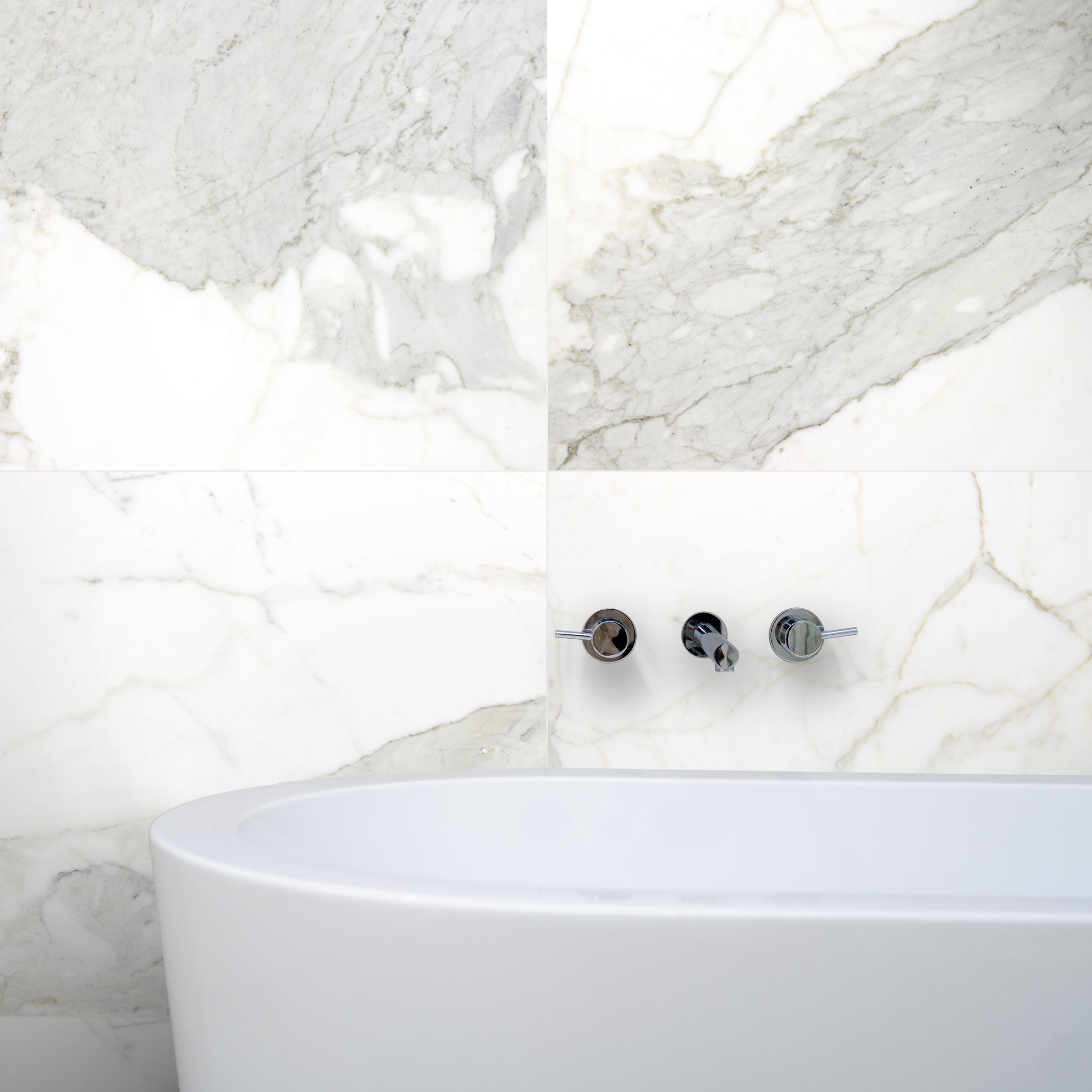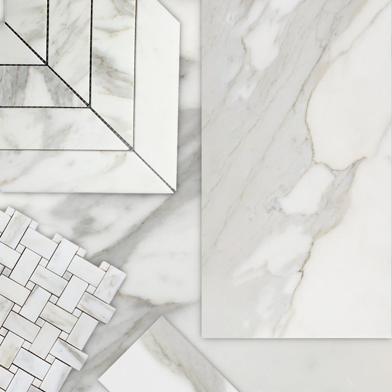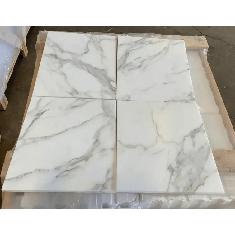 Calacatta Gold Marble 18x36 Tile, also known as Calacatta Oro 18x36 Marble Tile, is a premium-grade marble tile perfect for both residential and commercial flooring projects. These 18" x 36" marble tiles are favored for their clean aesthetic qualities. A wide selection of coordinating products is available, including Calacatta 2x4 mosaic subway tiles, Calacatta chevron mosaic tiles, Calacatta 1" hexagon mosaic tiles, Calacatta 2" hexagon mosaic tiles, Calacatta picket mosaic tiles, and Calacatta bullnose pencil molding. The Calacatta Gold Italian Marble collection is offered in both honed and polished finishes.