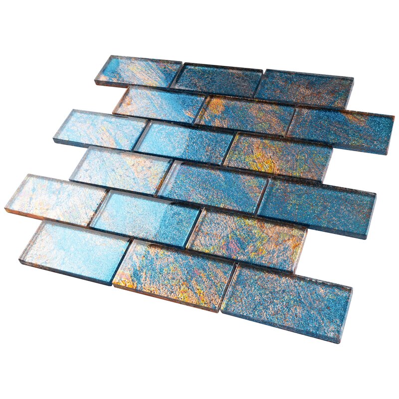 2x4 Glossy Glitter Blue Sky with Redish and Orange Brick Glass Wall Tiles for Bathroom and Kitchen Walls Kitchen Backsplashes