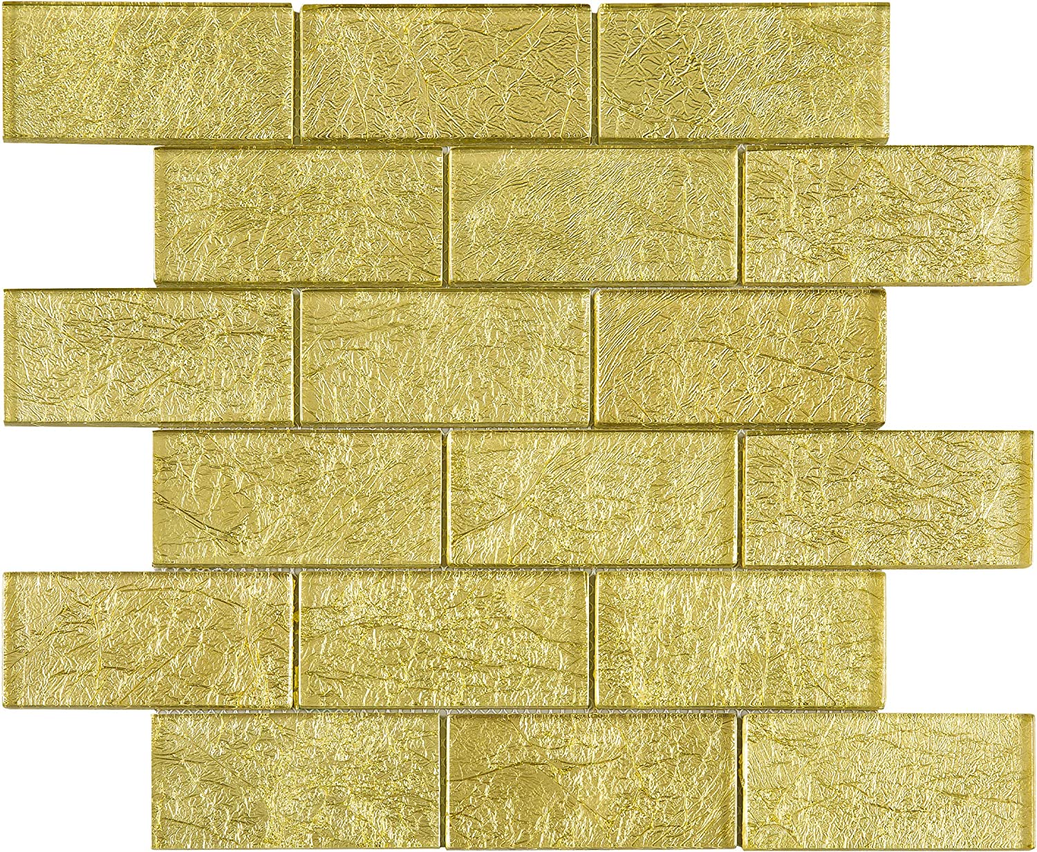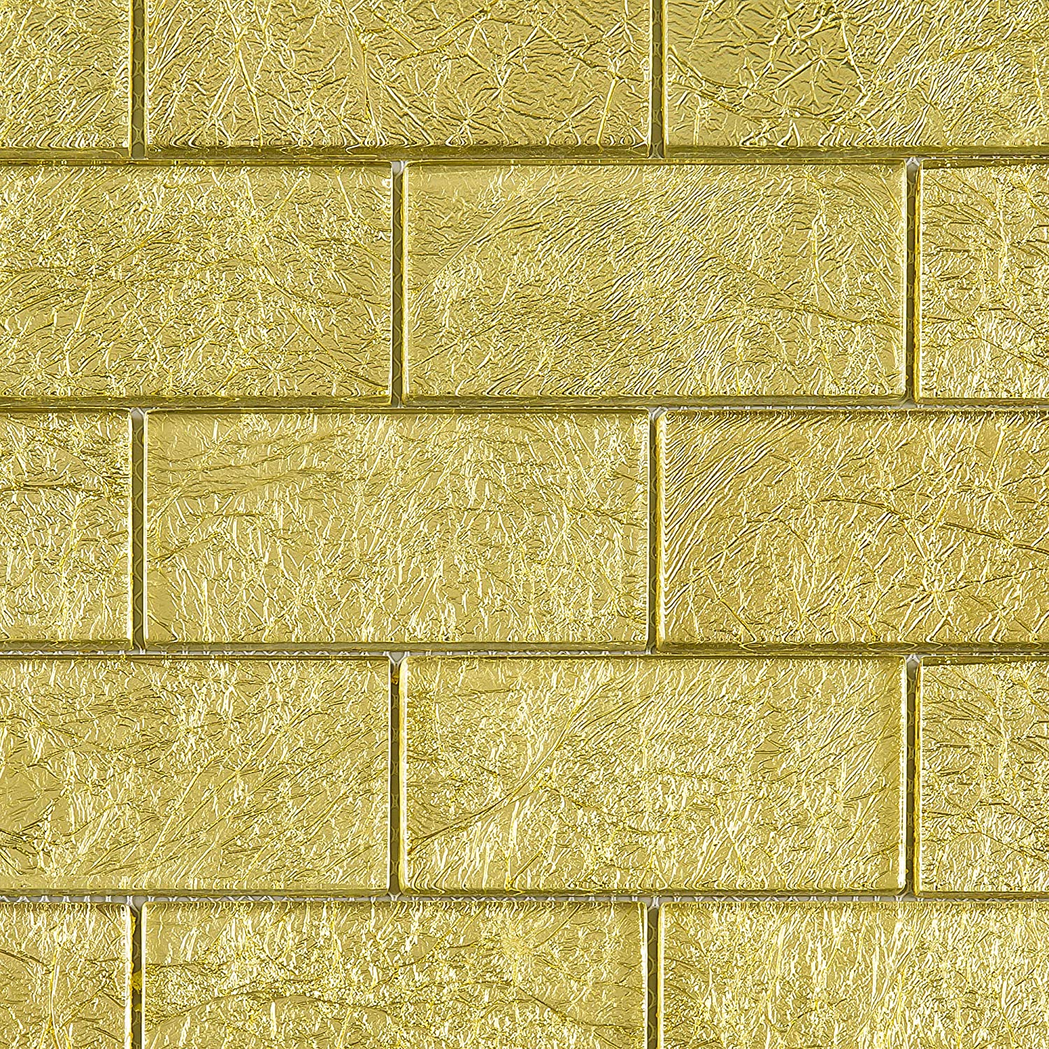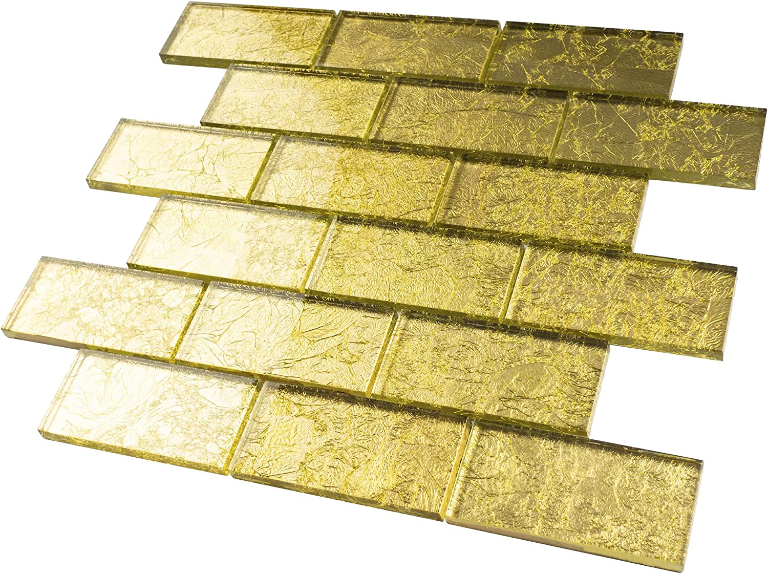 2x4 Glossy Glitter Gold Yellow Brick Glass Wall Tiles for Bathroom and Kitchen Walls Kitchen Backsplashes
