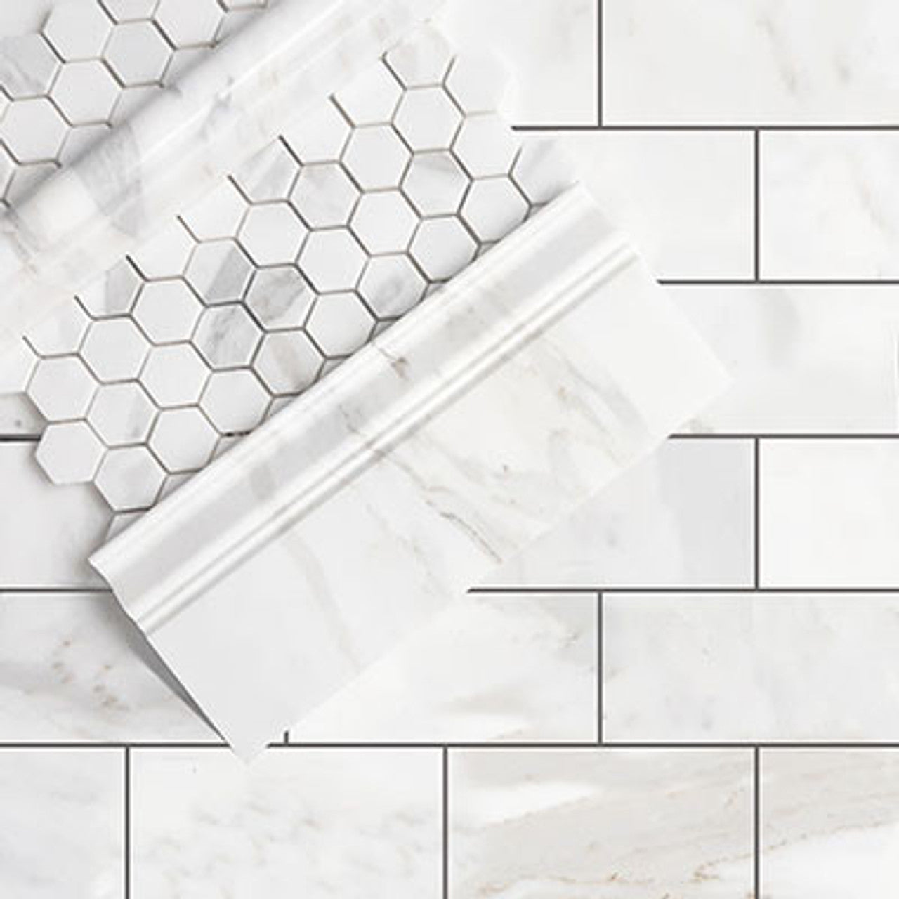 Calacatta Gold Marble 3x6 Tile, also known as Calacatta Oro 3x6 Marble Tile, is a premium-grade marble tile that is perfect for both residential and commercial flooring projects. These 3"x 6" marble tiles are primarily preferred for their clean aesthetic qualities. A large selection of coordinating products is available, including Calacatta 2x4 mosaic subway tiles, Calacatta basketweave mosaic tiles, Calacatta 1" hexagon mosaic tiles, Calacatta 2" hexagon mosaic tiles, Calacatta herringbone mosaic tiles, and Calacatta bullnose pencil molding. The Calacatta Gold Italian Marble collection is available in both honed and polished finishes.