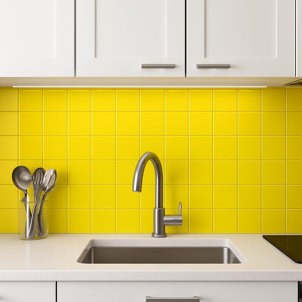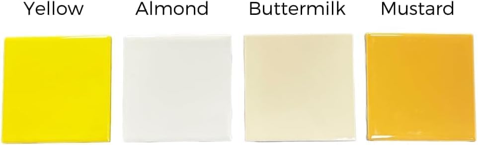 Bring vibrant charm and timeless elegance to your space with the Tenedos 4 1/4 inch Glossy Yellow Ceramic Tile. Crafted from premium ceramic, this square-shaped tile (4.25" x 4.25") features a high-gloss finish that reflects light beautifully, making your kitchen backsplash or bathroom wall appear brighter and more spacious. With a solid yellow color, this tile adds a cheerful and warm touch to both modern and classic interiors. Perfect for indoor and covered outdoor applications, these tiles are durable, water-resistant, and easy to maintain, making them an excellent choice for high-traffic areas. Whether you're upgrading a kitchen wall, bathroom shower surround, laundry room, or creating a backsplash with character, Tenedos ceramic tiles deliver lasting performance and visual appeal. Each box includes 10 tiles, covering 1 square foot in total. Available in a range of colors including White, Black, Cobalt Blue, Sand, Almond, Yale Indigo Blue, and Olive Green, this versatile tile line allows for creative customization. Installation is easy with a glue-down method. Add a splash of color and sophistication to your home or commercial space with this stylish and practical ceramic tile from Tenedos.