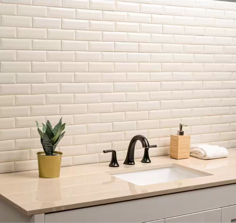 Elegant and understated, Antique White Beveled Tile lends an elegant, handcrafted element to any design. This beautiful backsplash tile is suitable for a wide range of installations including backsplashes in both kitchens and bathrooms as well as for showers and bathtubs. Their timeless elegance makes them the perfect complement to a wide range of other surfaces in inventory including natural stone slabs and other porcelain, ceramic, mosaic, and natural stone tiles in our collection.
