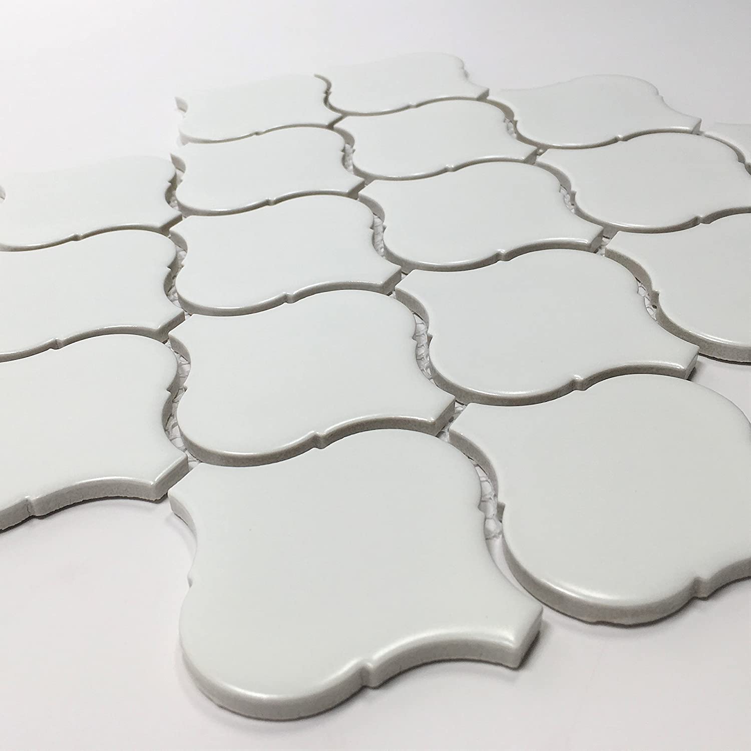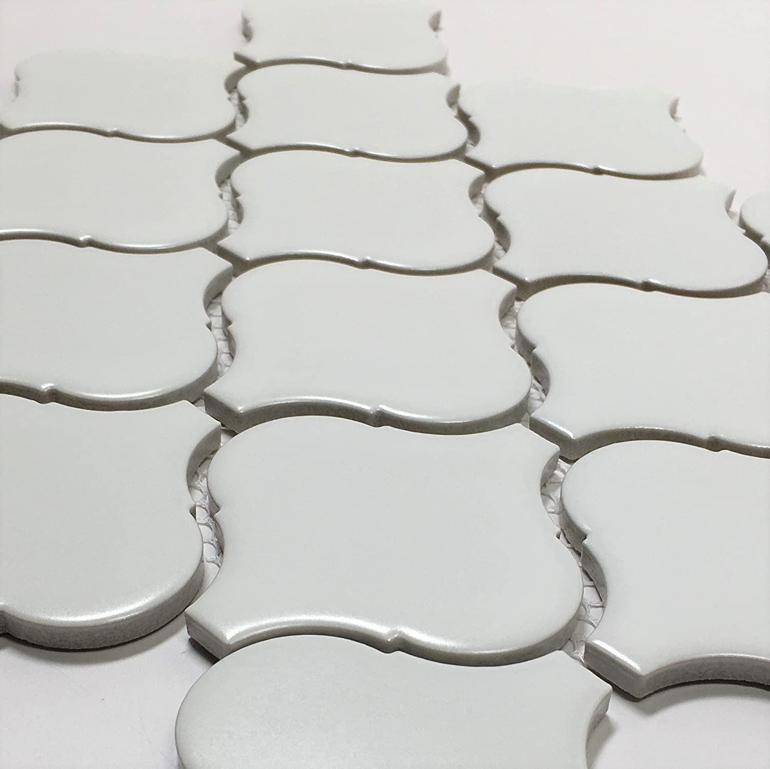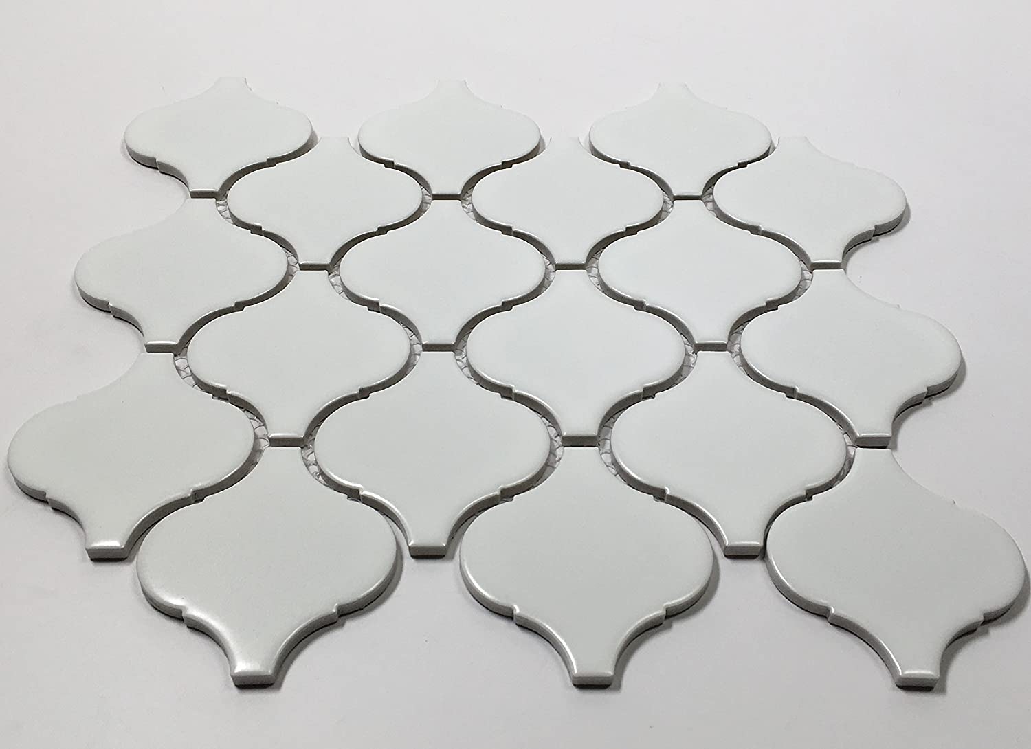 Arabesque 11 in. x 9.5 in. x 6 mm Glazed Porcelain Mesh-Mounted Matte Mosaic Tile (11 pcs / case) (WHITE) - Tenedos