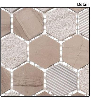 Tile size: 1 1/4" hexagonSheet size: 12" x 11 5/8"Sheet coverage:.97 SQFTiles per sheet: 90Tile thickness: 3/8"...