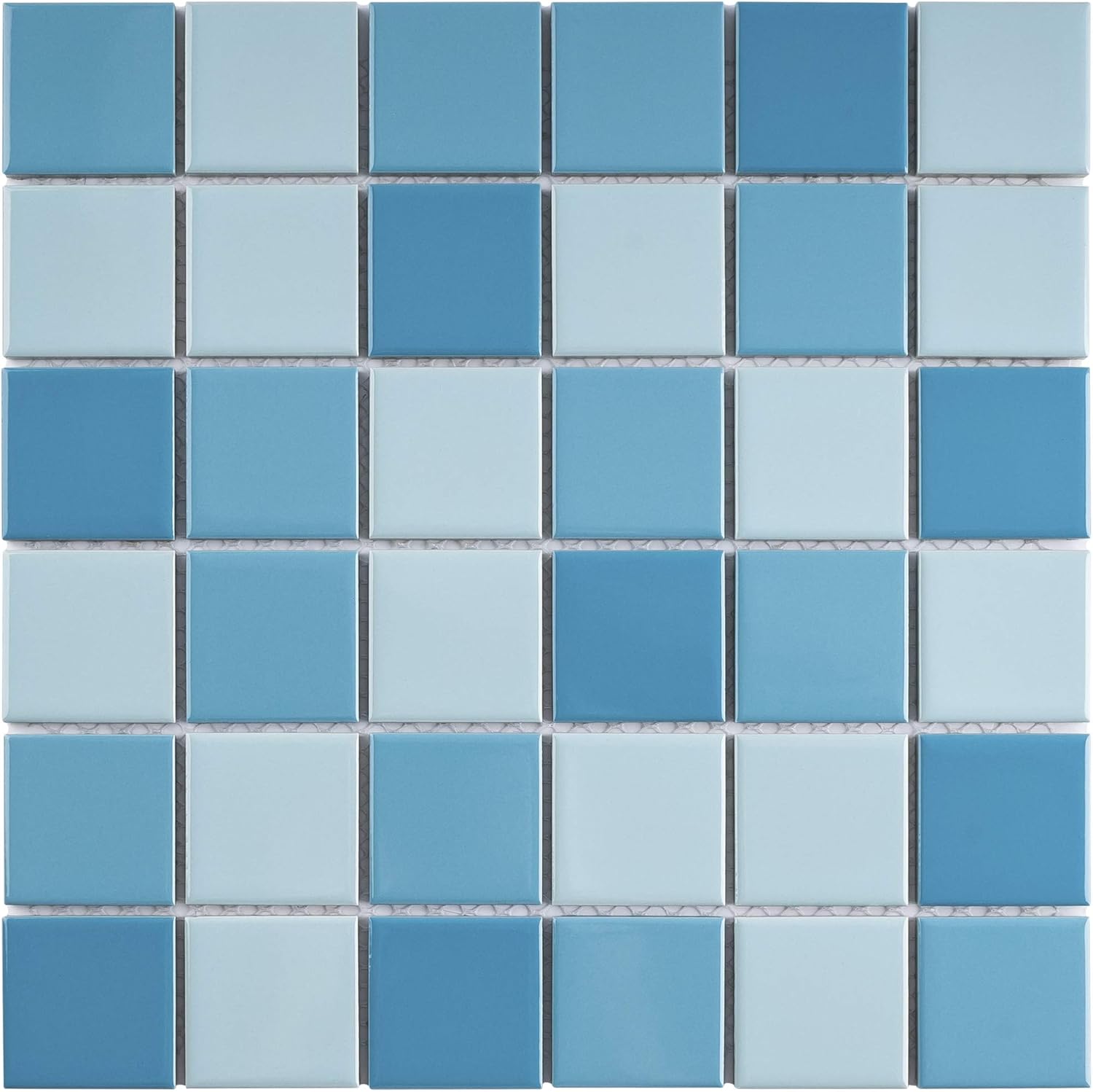 Ocean Breeze Light Blue 2"x2" Porcelain Tile Sheet - Gloss Look for Pools, Bathrooms & Floors