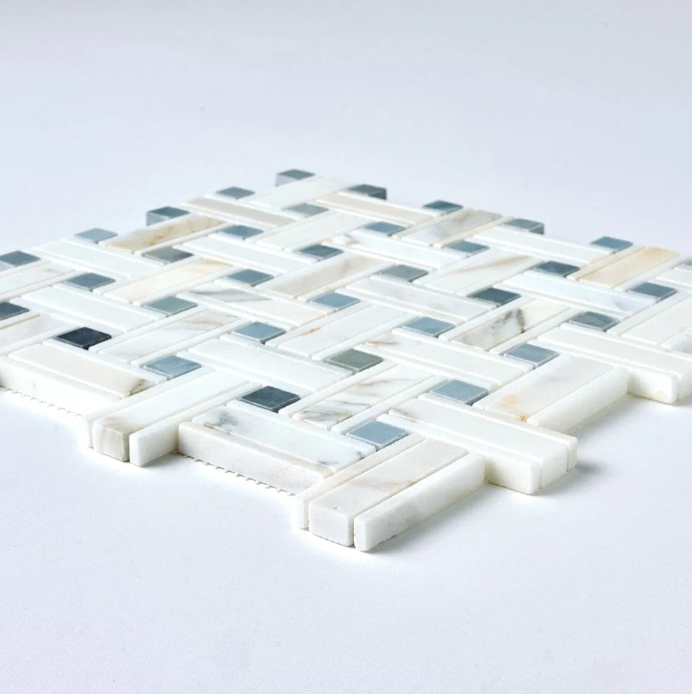 Calacatta Gold & Gray Kenzy Basketweave Marble Mosaic Honed