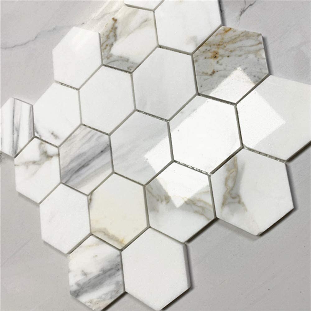 Calacatta Gold Marble 3" Hexagon Mosaic Tile for Kitchen Backsplash Bathroom Flooring Shower