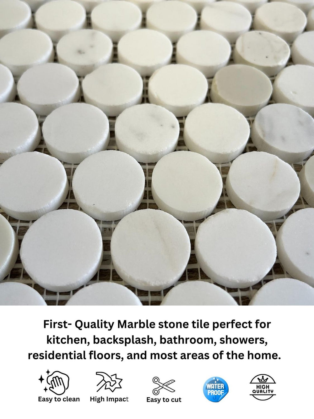 1 inch Calacatta Gold Penny Round Honed Marble Wall Floor Tile Backsplash for Kitchen, Bathroom Shower Spa, Fireplace, Flooring