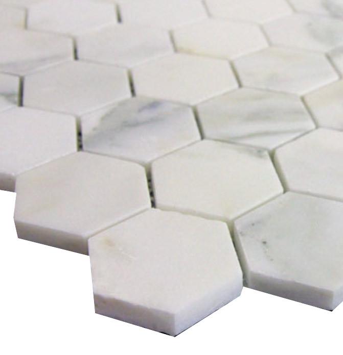 Stone Size: 1 13/16" (Distance between two parallel edges); 2" (Distance between two points) Grout Width: 1/16" Rows: 6 Columns: 6 Stones per sheet: 36 HTC-CAL-HEX2