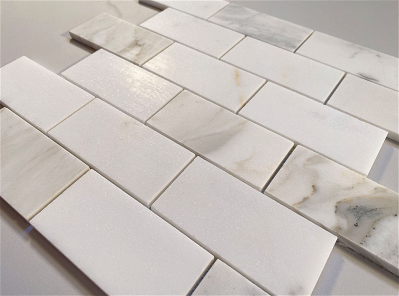 Calacatta Gold Italian 2x4 Subway Brick Marble Mosaic Floor Wall Tile Honed for Bathroom and Kitchen Walls Kitchen Backsplashes