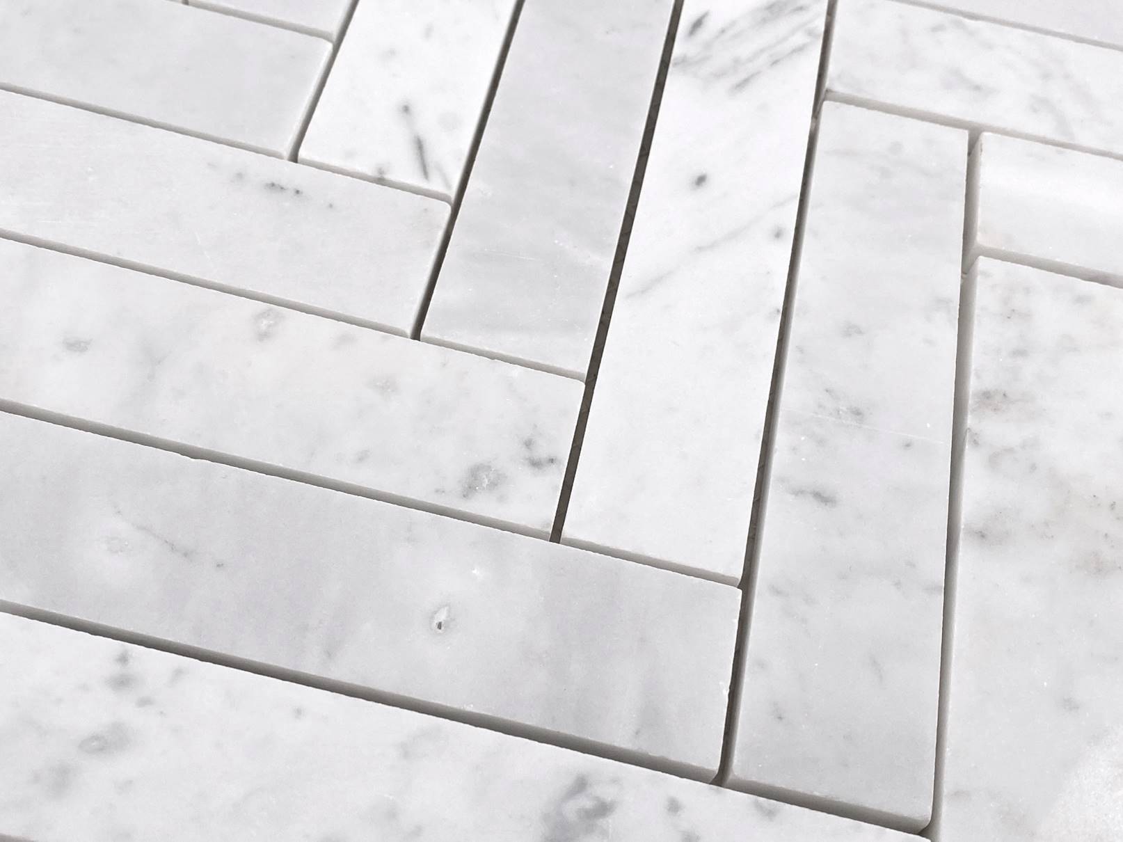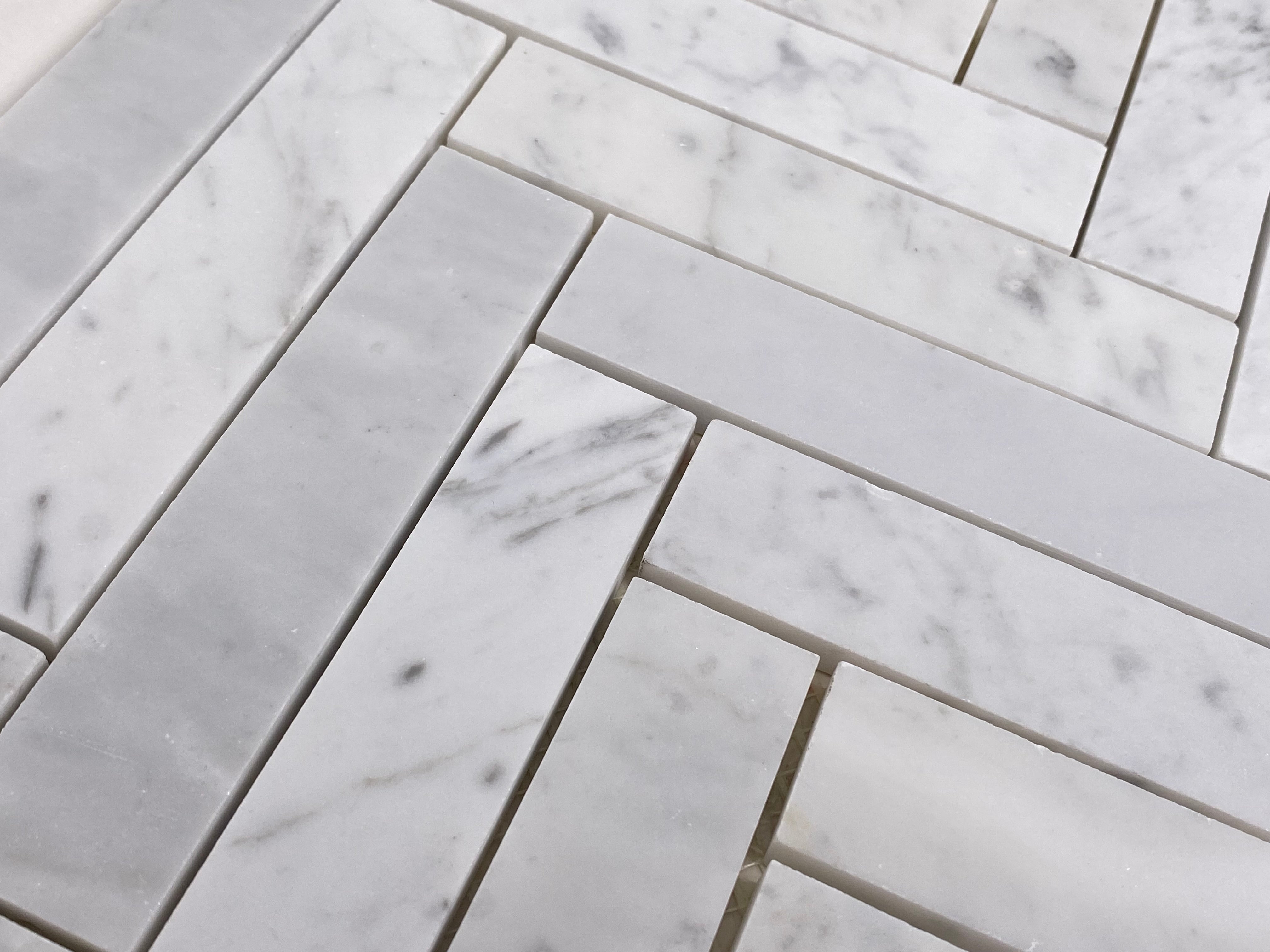Carrara Marble 1x6 Long Herringbone Mosaic Tile Polished for Kitchen Backsplash Wall Bathroom Flooring Shower