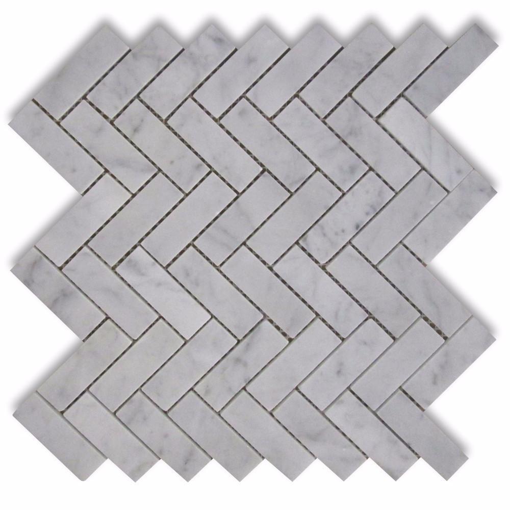 - Premium Grade Carrara Marble Italian White Bianco Carrera 1x3 Herringbone Mosaic Tile Polished