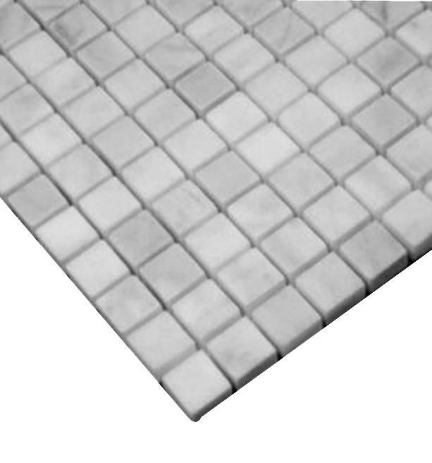 Carrara Marble 5/8x5/8 Mosaic Tile. The polished Bianco Carrera Italian White marble creates a timeless, elegant look that will transform any space. This durable tile is designed to last for years and can be quickly installed for your convenience.