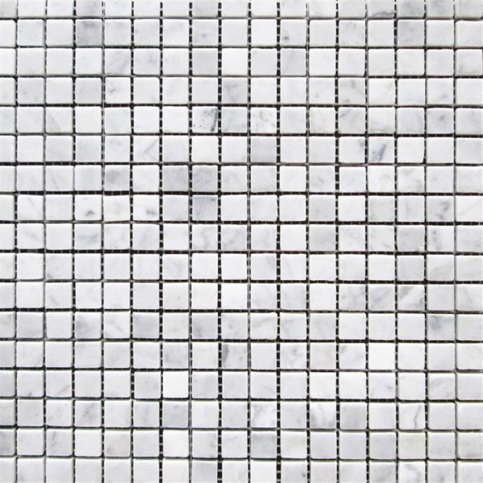 Color&Finish : Carrara Marble Italian White Bianco Carrera 5/8x5/8 Mosaic Tile Honed on a mesh netting is...