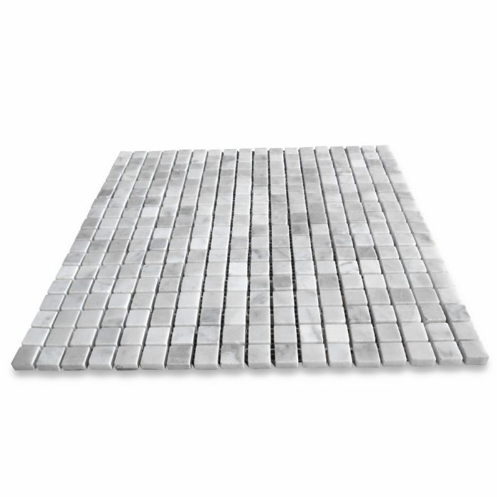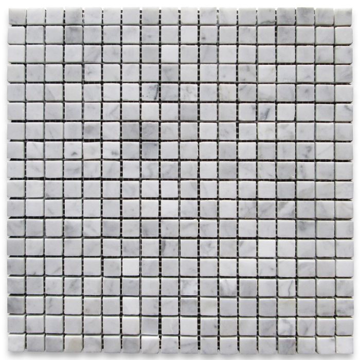 Carrara Marble Italian White Bianco Polished 5/8x5/8 Mosaic Floor Wall Tile for Bathroom Shower, Fireplace, Accent decor, Kitchen Backsplashes