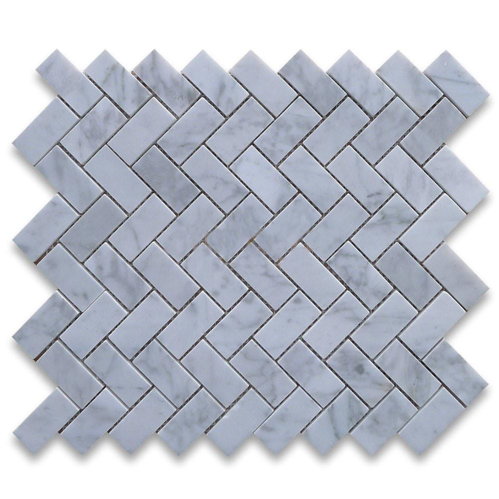 - Premium Grade Carrara Marble Italian White Bianco Carrera 1'' x 2'' Herringbone Mosaic Tile Polished- Stone...