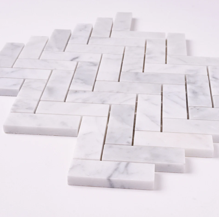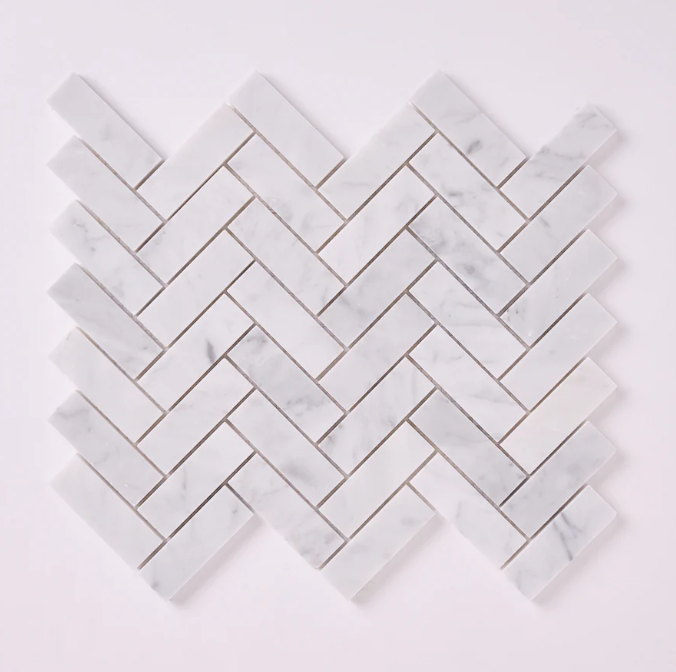 Carrara White 1x 3 Herringbone Mosaic Honed