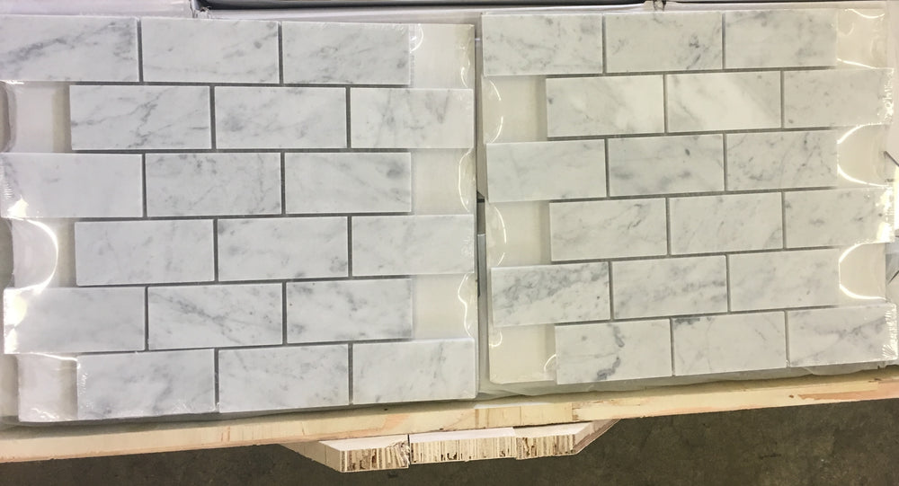Carrara White Italian Carrera Marble Subway Brick Mosaic Tile 2 x 4 Polished - Tenedos