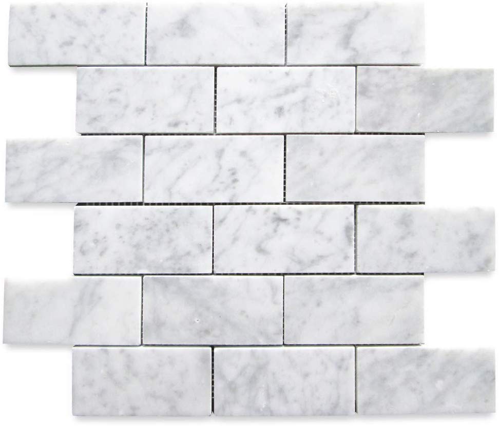 Premium Grade Carrara Marble Italian White Bianco Carrera 2x4 Mosaic Tile Honed