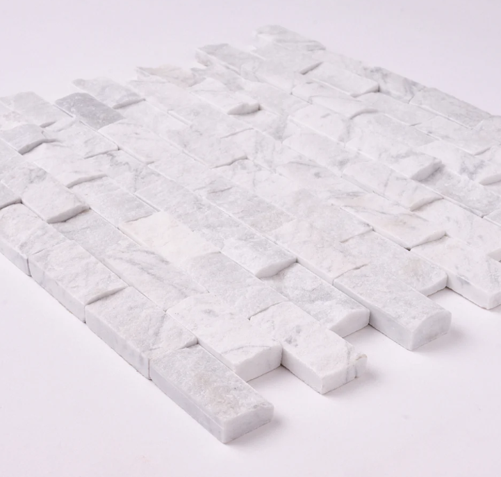 Carrara marble tiles are a classic white marble with a mixed fleuri and vein cut that blend to create subtle yet distinctive patterns. The veining in white Carrara marble is mainly grey with light to a white background, but Carrara can also have a slight gold tint to its veining that provides added dimension.
