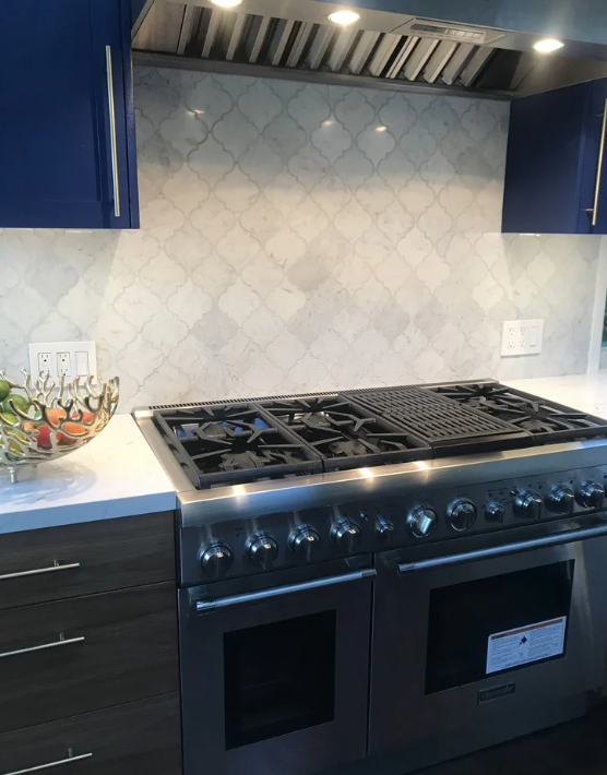 Carrara marble tiles is a classic white marble with a mixed fleuri and vein cut that blend to create subtle yet distinctive patterns. The veining in white Carrara marble is mainly grey with light to a white background, but Carrara can also have a slight gold tint to its veining that provides added dimension.