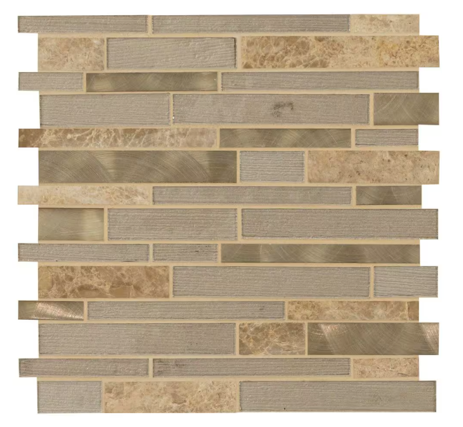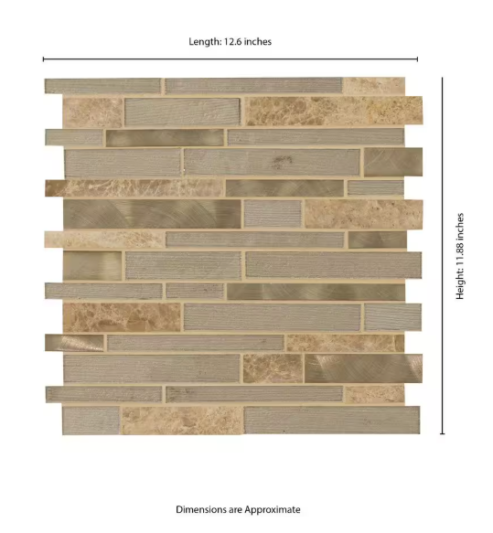 MSI Champagne Toast Interlocking Glass/Metal/Stone Mosaic Tile offers a sophisticated blend of materials and colors, ideal for enhancing various interior and exterior spaces. Here are the key features:
