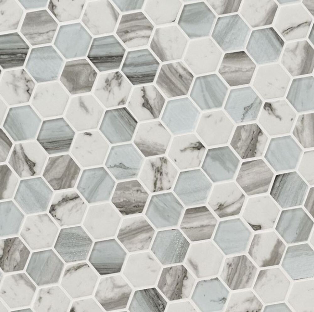 Material: Glass - Color: White blend with Tones of Gray Sheet Size: 11.7 in. x 11.8 in....