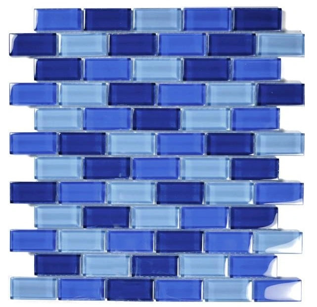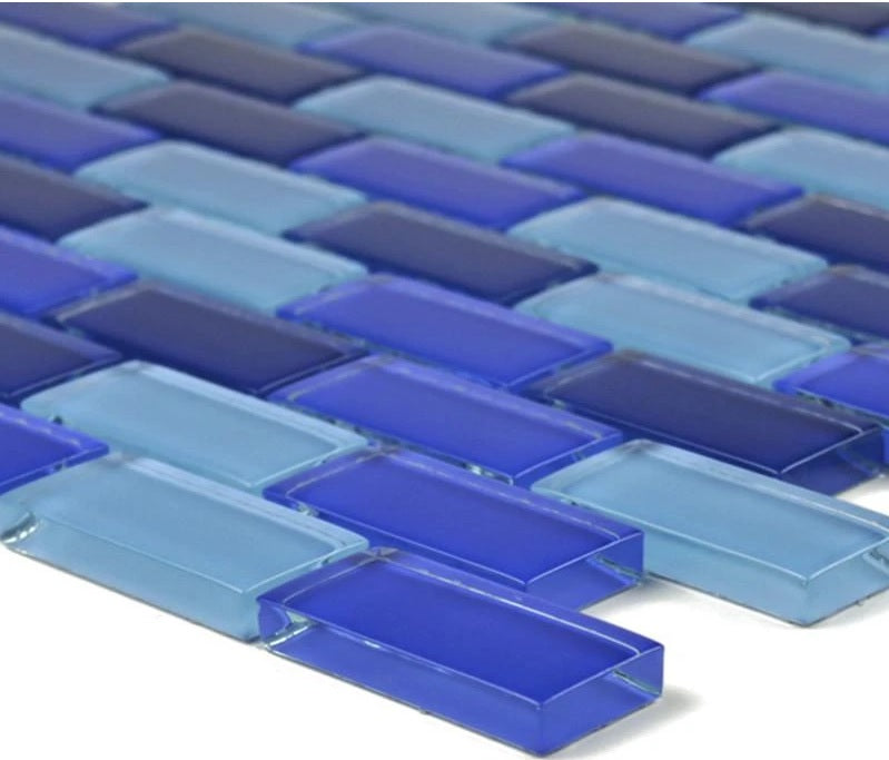 1x2 Cobalt Blue Blend Glass Wall Tile for Pool Tile, Kitchen Backsplash, Bathroom Shower, Accent Wall