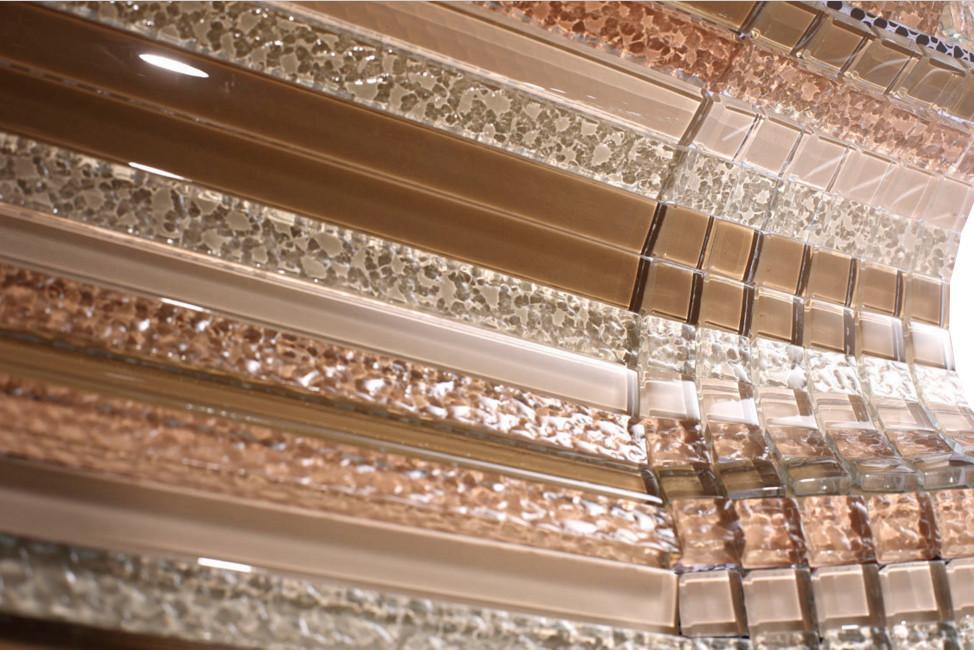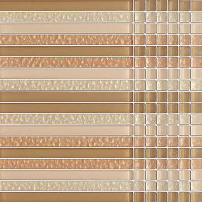 Cream Glossy Stripes and Square Mixed Glass Mosaic Tiles