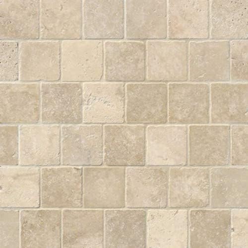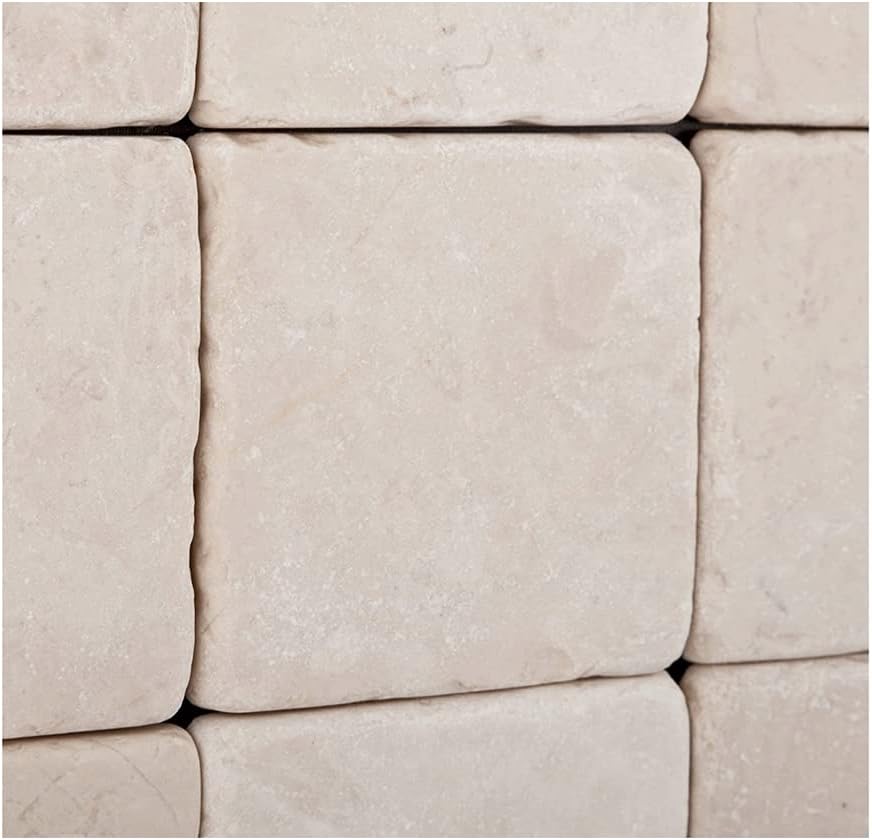 This 4 X 4 Crema Marfil Spanish Marble Tumbled Subway Field Tile is a stylish, natural stone...