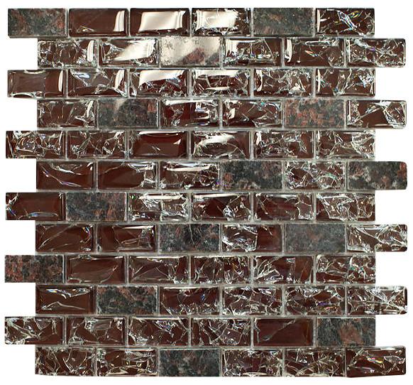 Dark Red Crackle Glass and Brown Granite Mosaic Tile