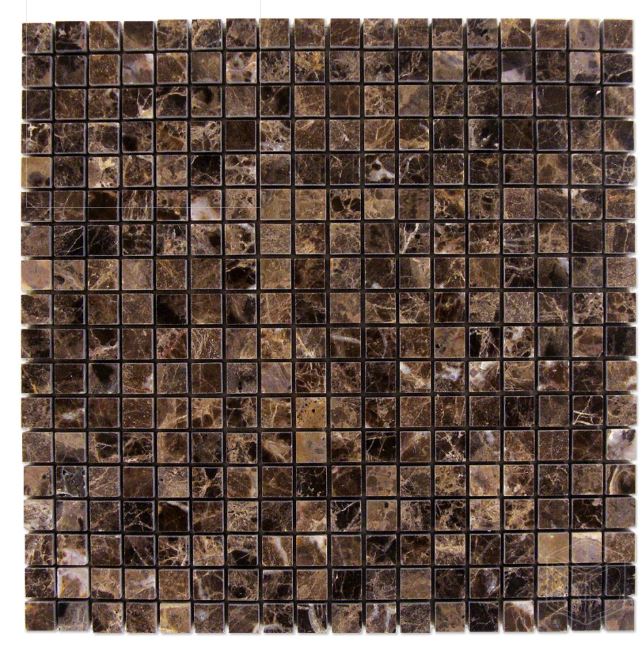 Emperador Dark Spanish Marble Square 5/8 X 5/8 Mosaic Wall Floor Tile Backsplash Polished for Kitchen, bathroom Shower, Accent décor, Fireplace