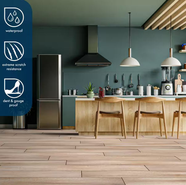This flooring is suitable for different levels of a home (above, on, or below grade) and can be used with select radiant heating systems. It resists mold and mildew growth, adding a layer of protection for health and safety.