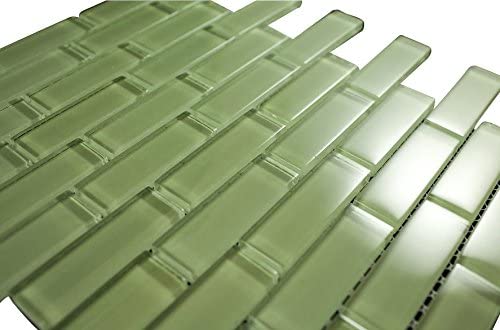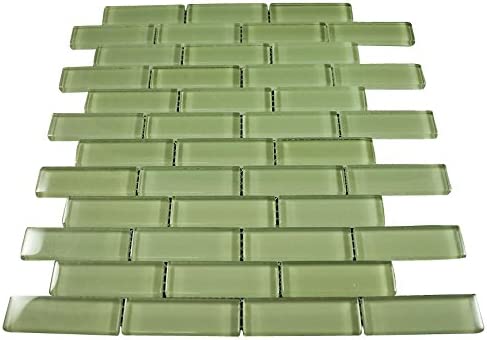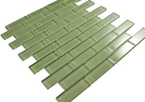 Item Weight: 3 lbs (1 sheet) Color&Finish : Glossy Lake Green Subway Glass Mosaic Tiles Field Size:...