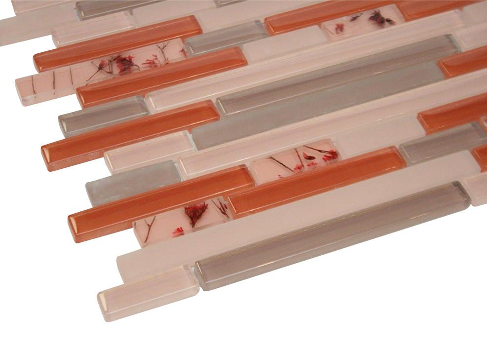 Glossy Orange and Grey with Flower Pieces Random Brick Pattern Glass Mosaic for Bathroom & Kitchen Walls