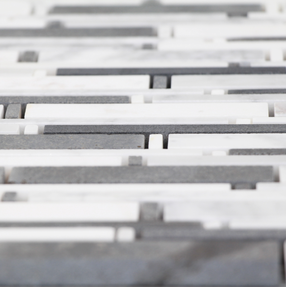 Grey and White Matte Random Brick Pattern Marble Stone Tiles