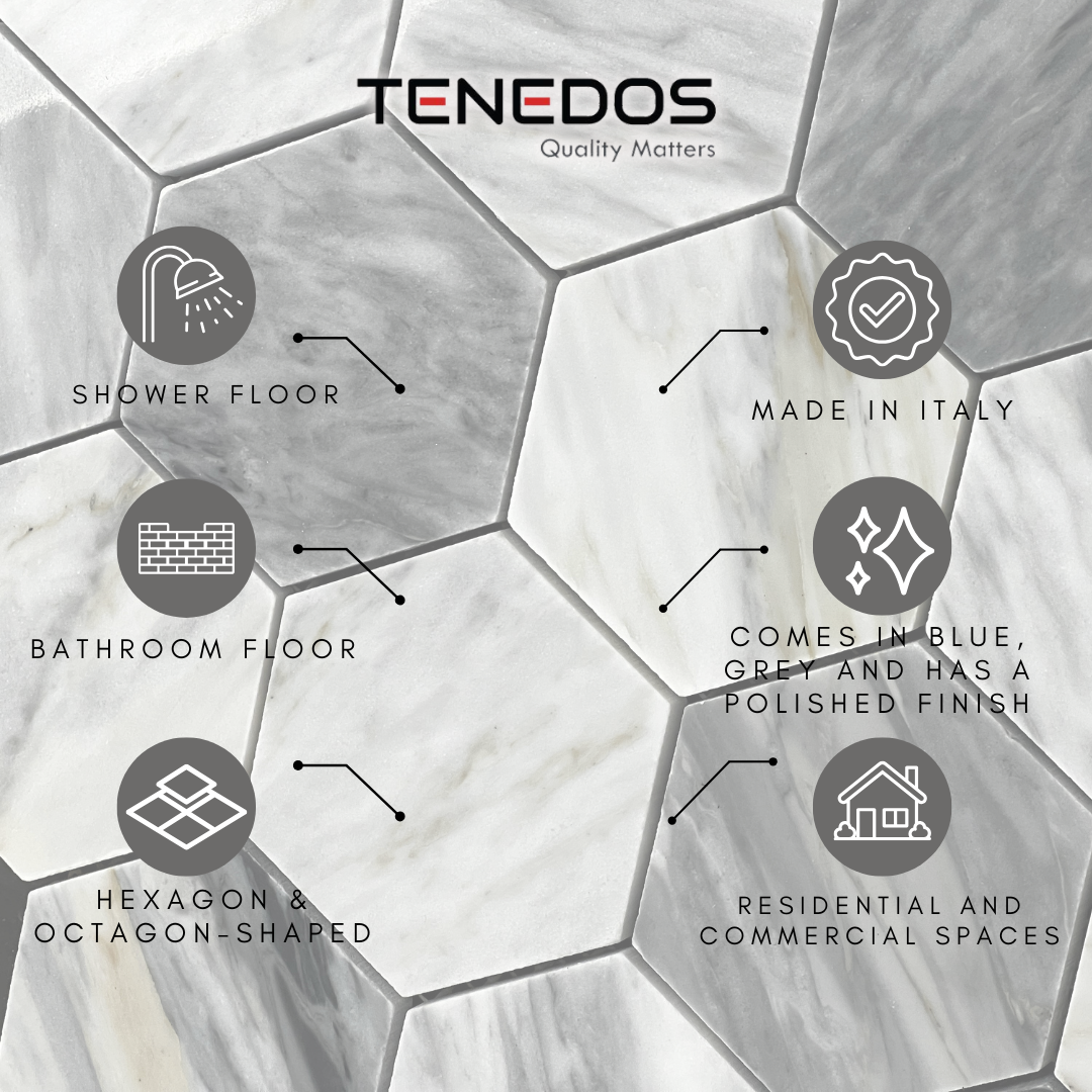 The hexagon and octagon shapes of the marble create eye-catching and distinctive patterns.