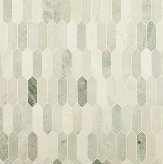 Add a splash of elegance to your decor with this 13.78 in. x 10 in. Honed Marble Mosaic Tile. This Grade 1 tile makes a statement on floors, walls and countertops. The luxurious Icy Green with hints of white picket pieces are compatible with subsurface heating elements and water-resistant, providing ample opportunities for floors and walls in kitchens and bathrooms. Offering supreme style and strength, the frost-resistant tile absorbs more than 3% but less than 0.5% of water. This flooring option is skid-resistant for added safety.