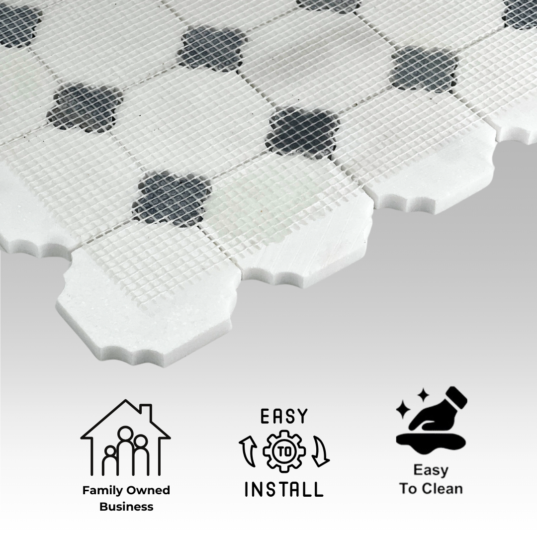 Elevate your home decor with the Lavender Marble Mosaic Tile. Combining the timeless elegance of marble with vibrant color accents, this tile features an unglazed polished finish and a high sheen, making it an excellent choice for showers, fireplaces, bathrooms, or accent walls. Its durability allows for use in both residential and commercial spaces, indoors or outdoors.