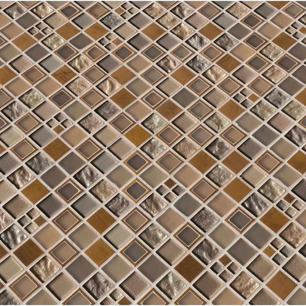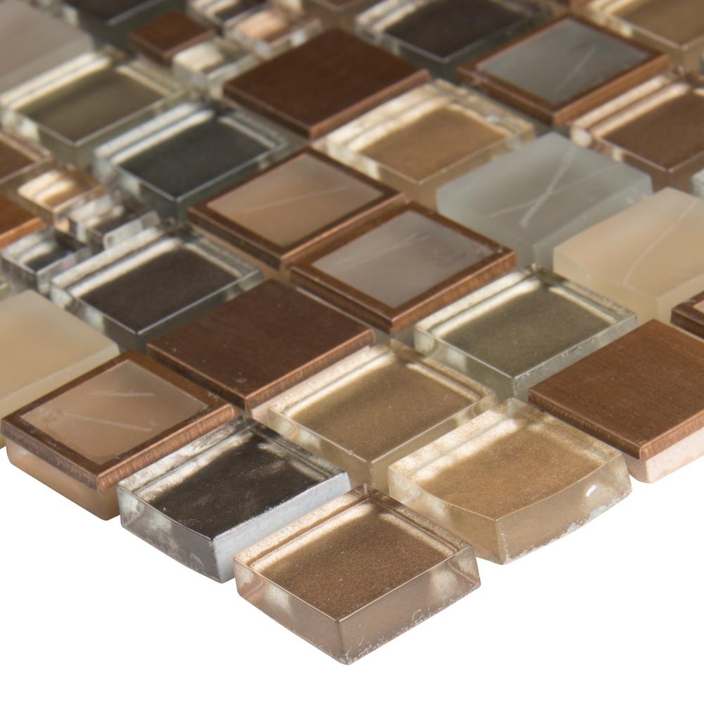 Elevate your home interior with the MSI Manhattan Wall Tile. Made of brownish glass and metal mesh, this glossy mosaic tile features a unique blend of random-sized pieces and an eye-catching glossy finish for an elegant, modern look. Perfect for backsplashes and shower walls.