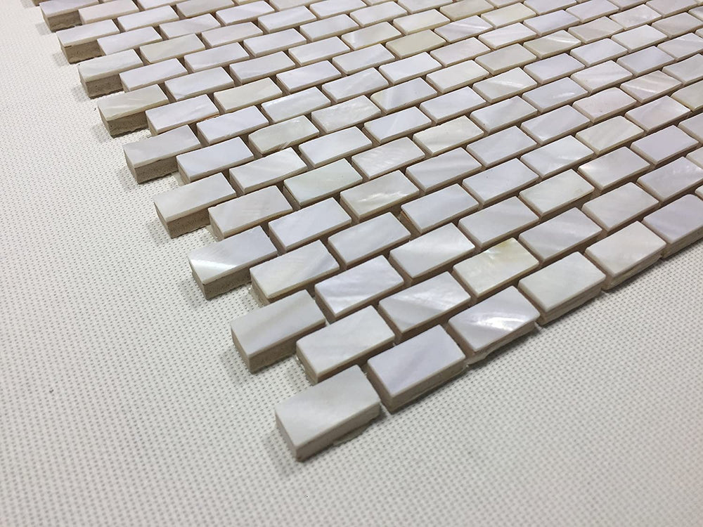 This Mother of Pearl Seashell Oyster Mini Brick tile is beautifully crafted and can be used for multiple applications such as kitchen backsplashes, bathroom showers, and fireplaces. Its iridescent pearl-like sheen and unique texture will elevate any design. The backing ensures easy installation and durability.