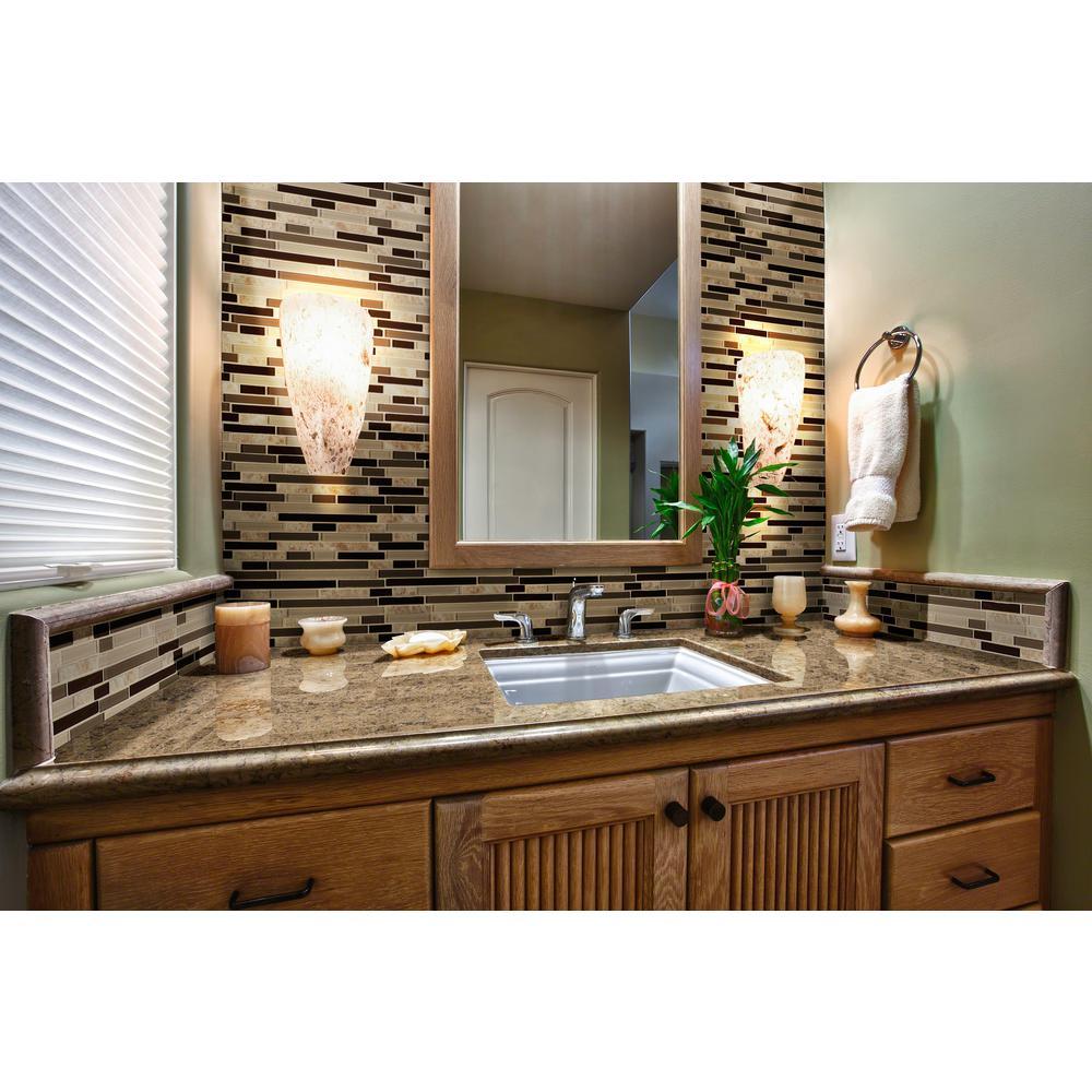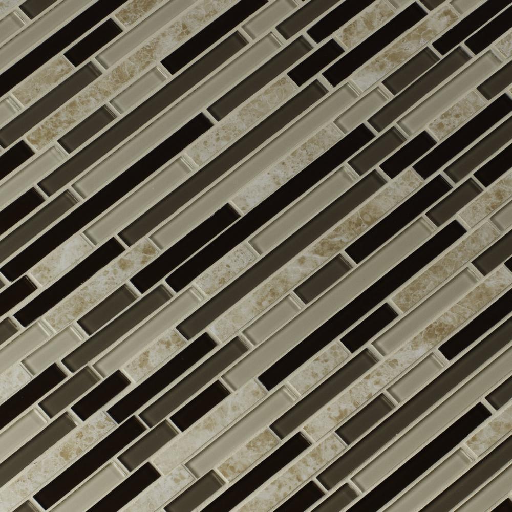 With the MS International Amalfi Cafe Interlocking Glass/Porcelain Mosaic Wall Tile, it's easy to add a dash of contemporary styling to your decor. This tile is mounted on a 12 in. x 12 in. mesh sheet with random length strips laid in an interlocking pattern. A blend of crystallized glass and porcelain in beige and brown tones make it an attractive option to complement any install in a wide variety of design schemes.