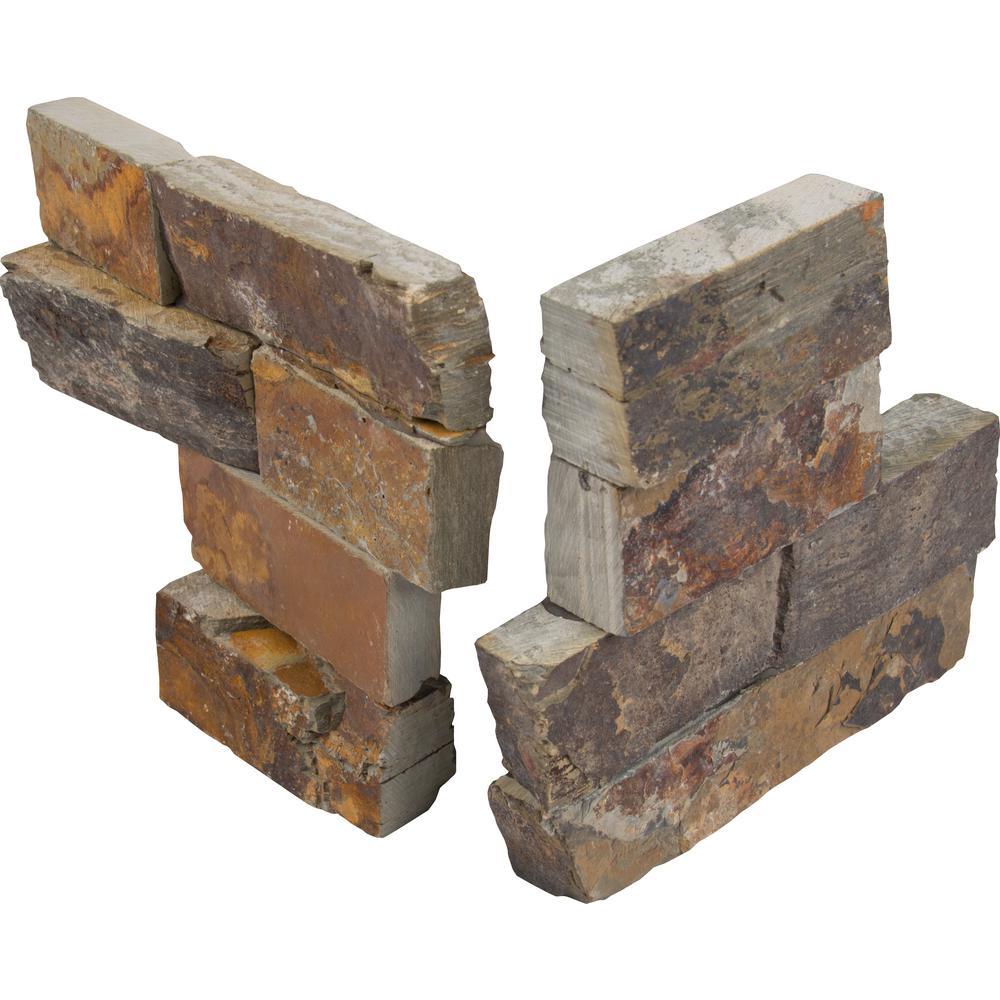 MS International's 6 in. x 6 in. California Gold Ledger Corners feature a striking blend of rich rusts, browns, and charcoal grays in a gauged finish. Highly prized for its rustic, warm appearance, the ledger corners complement MSI's California Gold Ledger Panels. They come in two separate pieces, each with stepped cut ends - which allows them to be used as traditional corners or inverse corners - depending on your installation needs. California Gold Ledger Corners are suitable for residential and light-commercial settings, where they put the finishing touch on feature walls, fireplace surrounds, planter walls, and other projects. Note: Please inspect all tiles before installation. Natural stone products inherently lack uniformity and are subject to variation in color, shade, finish, etc. It is recommended to blend tiles from different boxes when installing. Natural stones may be characterized by dry seams and pits that are often filled. The filling can work its way out and it may be necessary to refill these voids as part of a normal maintenance procedure. All natural stone products should be sealed with a penetrating sealer. After installation, vendor disclaims any liabilities.
