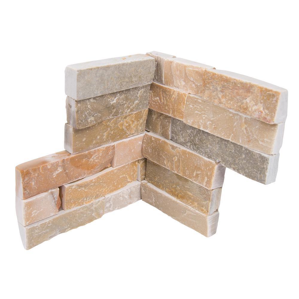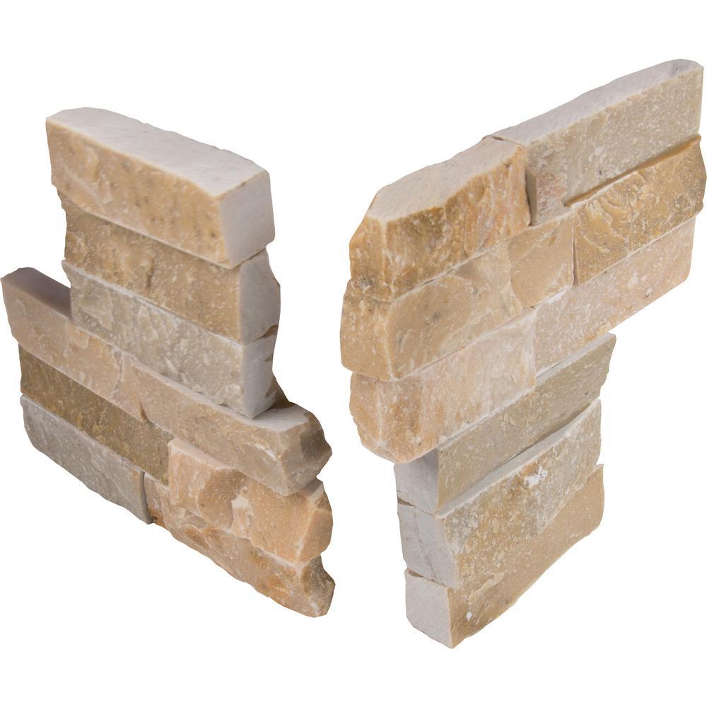 MS International's 6 in. x 6 in. Golden Honey Ledger Corners feature a lovely mix of warm whites, golds, and grays. The corners come in two separate pieces, each with stepped cut ends - which allows them to be used as traditional corners or inverse corners - depending on your project needs. They complement MSI's Golden Honey Ledger Panels, giving accent walls, backsplashes, retaining walls, barbeque surrounds, and other projects a finished, professional look. Golden Honey splitface ledger corners are suitable for residential and commercial installations, both indoors or out. Note: Please inspect all tiles before installation. Natural stone products inherently lack uniformity and are subject to variation in color, shade, finish, etc. It is recommended to blend tiles from different boxes when installing. Natural stones may be characterized by dry seams and pits that are often filled. The filling can work its way out and it may be necessary to refill these voids as part of a normal maintenance procedure. All natural stone products should be sealed with a penetrating sealer. After installation, vendor disclaims any liabilities.