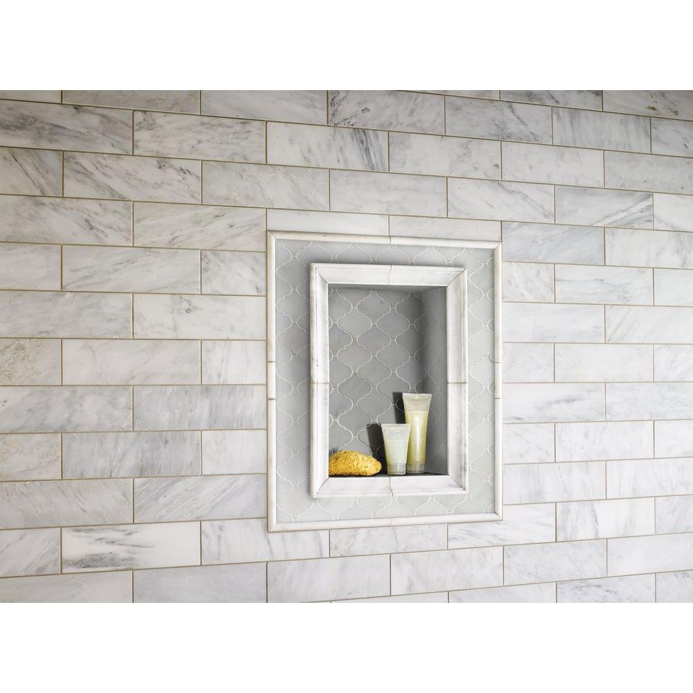 Add a splash of sophistication to your decor with Greecian White Arabesque Polished Marble Mosaic Floor and Wall Tile from MS International. It features arabesque-styled pieces of polished white Italian marble, lending an upscale look and contemporary flair to any interior expanse. The medium-sheen, smooth-finished genuine stone chips are perfectly arranged on a 12 in. x 12 in. mesh-backed mosaic, which seamlessly interlocks with other tiles to create a transition- appearance. Suitable for residential and commercial use, this ornate tile has a distinct pattern that is certain to inject space-defining allure into any setting. Note: Inspect all tiles before installation. Natural stone products inherently lack uniformity and are subject to variation in color, shade, finish, etc. It is recommended to blend tiles from different boxes when installing. Natural stones may be characterized by dry seams and pits that are often filled. The filling can work its way out and it may be necessary to refill these voids as part of a normal maintenance procedure. All natural stone products should be sealed with a penetrating sealer.