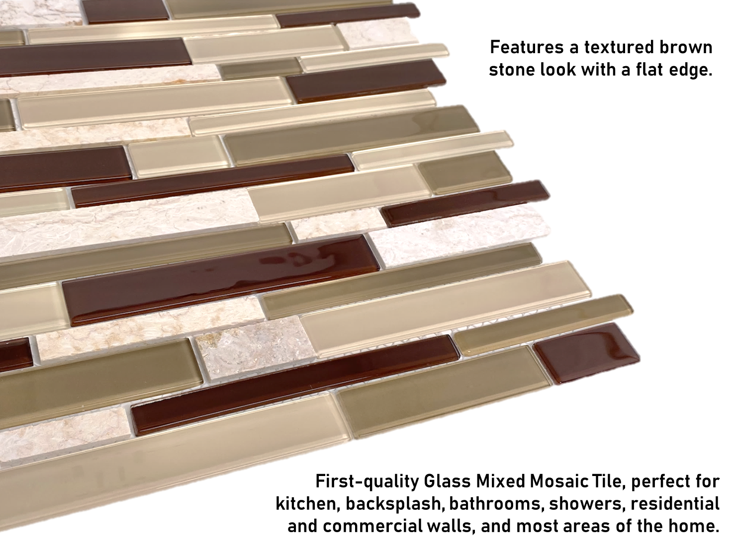 This wall tile from MS International offers a chic blend of glass and stone in a 12"x12" mesh-mounted mosaic. Not only does it make installation easier, but its modern look is sure to enhance any space. Perfect for kitchen backsplashes and other feature walls.