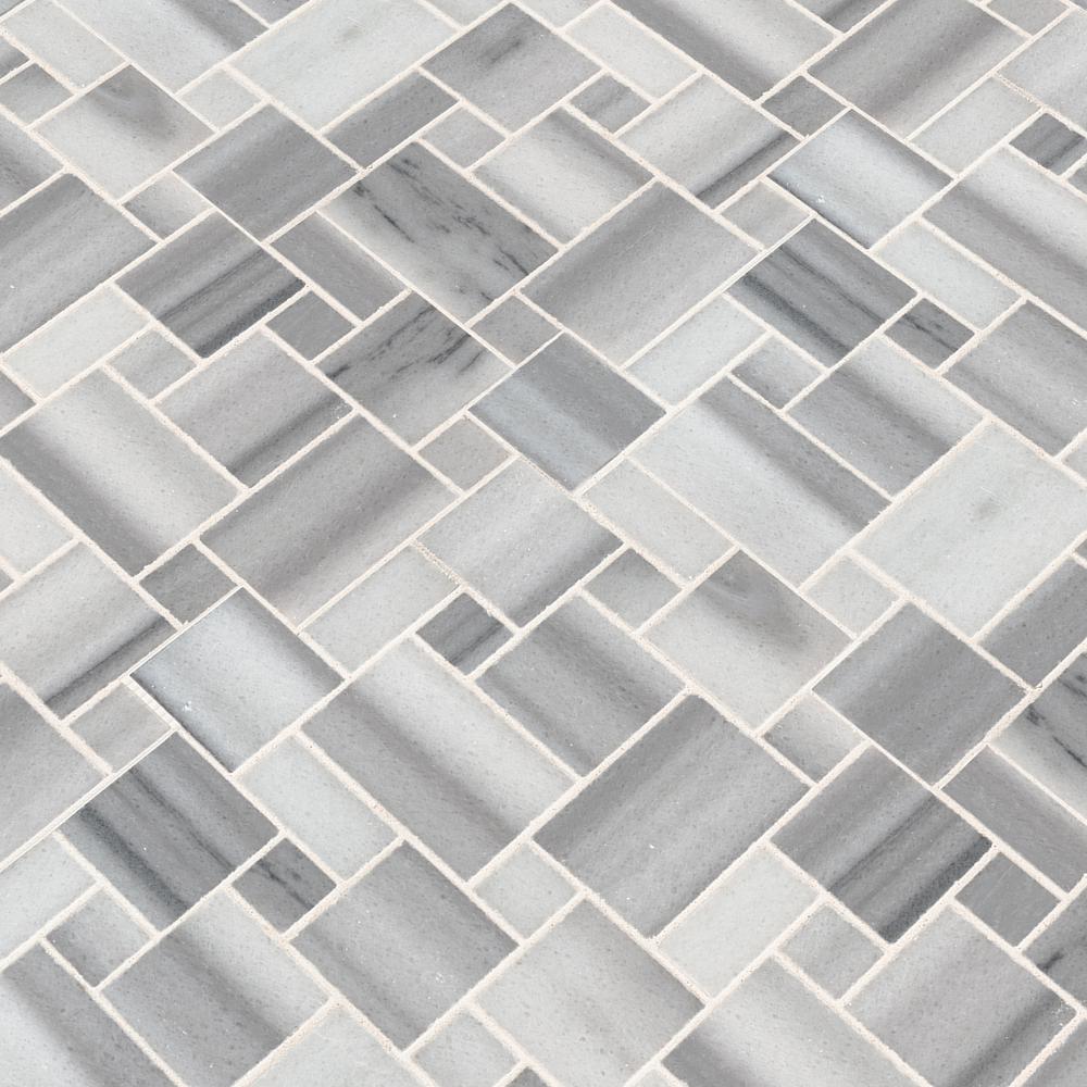 MSIs Bergamo Magic Pattern Marble Tile features the iconic gray and white tones of fine natural marble in an intriguing pattern with mini rectangular and square tiles. Timeless yet on-trend, its suitable for a wide range of design styles from transitional to modern. Residential or commercial, Bergamo Magic Pattern can be used as backsplash tile, floor tile, on shower walls, and even on countertops. Install it in more than one room to give your home a sense of cohesion thats the hallmark of sophistication. These tiles are mounted on mesh-backed sheets for simplified installation and a professional finish.